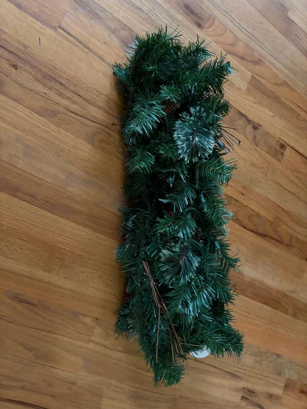 Quality isn’t too bad, wasn’t messy to fluff and lights work well. However it’s only about 7 feet of actual garland I put it above my 9 foot wide door and it is easily a foot short on either side.