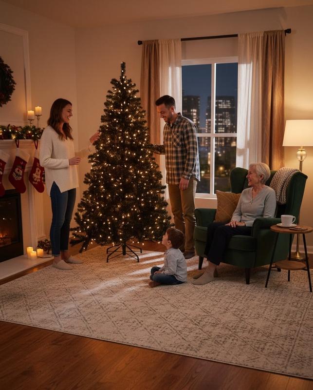From the moment I set this tree up, it transformed the entire mood of my space. The 7.5-foot height is striking—tall enough to feel majestic without overpowering my living room. The shape is full and natural-looking, with rich black spruce branches that give it an elegant and cozy woodland vibe. I love how well the tree is constructed; the branches feel sturdy, hold ornaments securely, and fluff out beautifully for a dense, symmetrical finish. One of the biggest advantages for me has been durability. This tree is built to last season after season, keeping its structure even after being packed away. Despite its size, it isn’t overly heavy, which made setup and adjusting the placement so much easier than expected. The design allows for hassle-free storage too; the sections break down smoothly and fit back into the box without a wrestling match. It holds decorations like a dream. Whether it’s lights, garlands, or heavier ornaments, the branches stay firm with no drooping. I realized quickly that this isn’t just a tree—it’s a statement piece that brings warmth, nostalgia, and a touch of modern sophistication all at once. If you want a holiday centerpiece that looks premium, feels reliable, stores easily, and creates unforgettable seasonal charm, this one does it effortlessly.