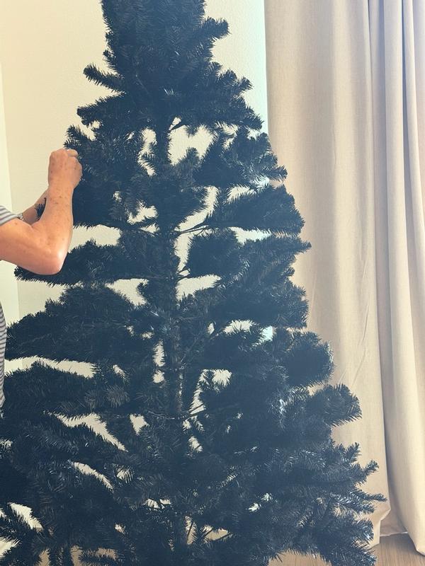 This black Christmas tree has such a bold, modern look that really stands out from the usual green trees. The color is rich, the branches look great once fluffed, and the overall shape fills out nicely. Assembly was straightforward with clear instructions, and the tree is lightweight but still feels stable. One thing to be aware of: the artificial needles shed a lot during setup and shaping. I had to sweep several times while assembling it, so be prepared for some extra cleanup. It also takes a bit of patience to get the branches fluffed evenly, as any gaps show more with the darker color. Once decorated, though, it looks striking and definitely brings a unique, dramatic touch to holiday décor.