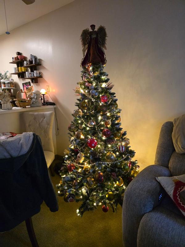 The frosted tips and pine cones add to the beauty! We were missing a pinecone but full enough to blend in with rest of tree and ornaments. Another quality tree purchased from you!