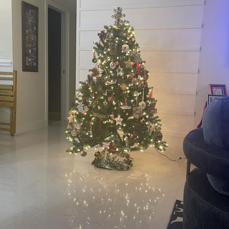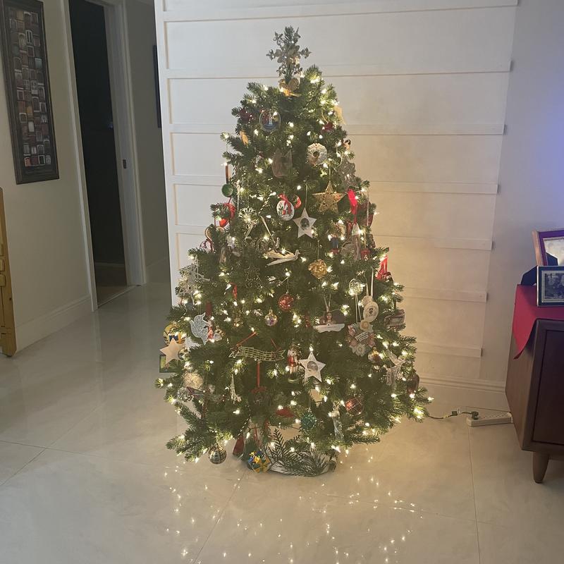 I love my new tree! Downsized from a 6.5 foot tree that was so heavy. This tree is easy to assemble and easy to fluff. My family loves all the lighting options! 12days of Christmas and 10 choices. Definitely a great choice for us!