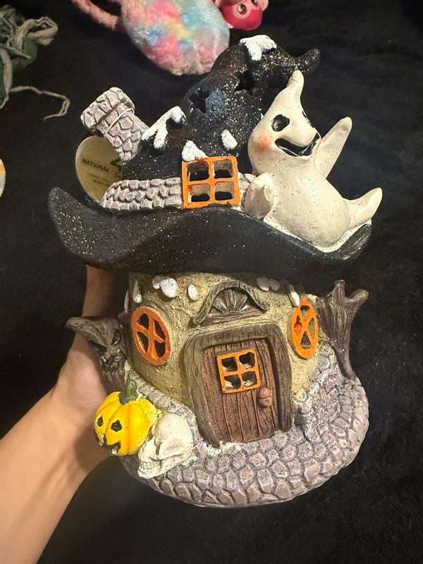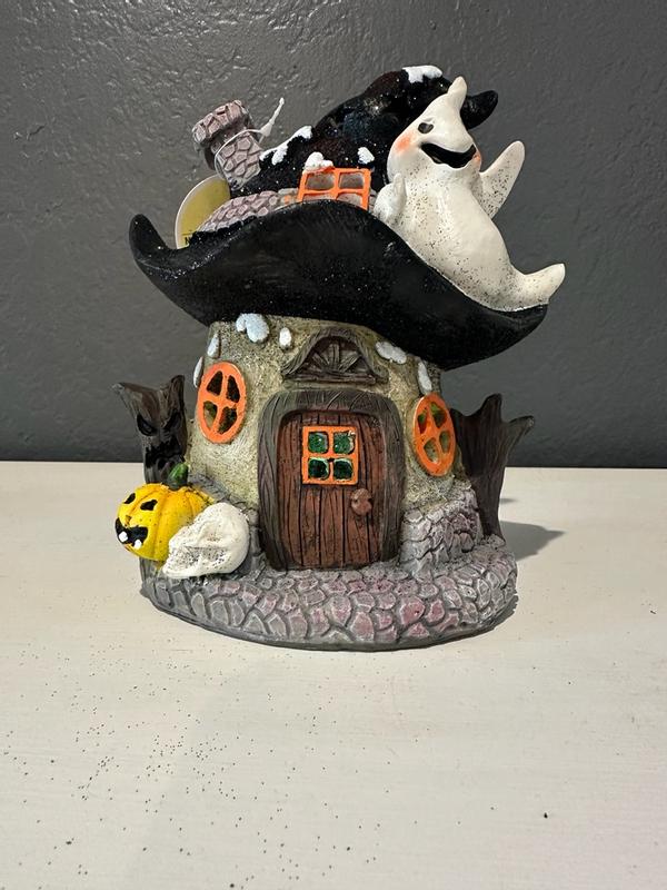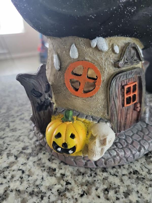 This Halloween decor piece is so cute! I think it is the perfect size to add a little bit of decor in your home. I love how it has a little flashing light inside the house to light it up with Halloween colors. There is a lot of excess glitter so I would be careful with that. Overall, it is cute and my style of decor.