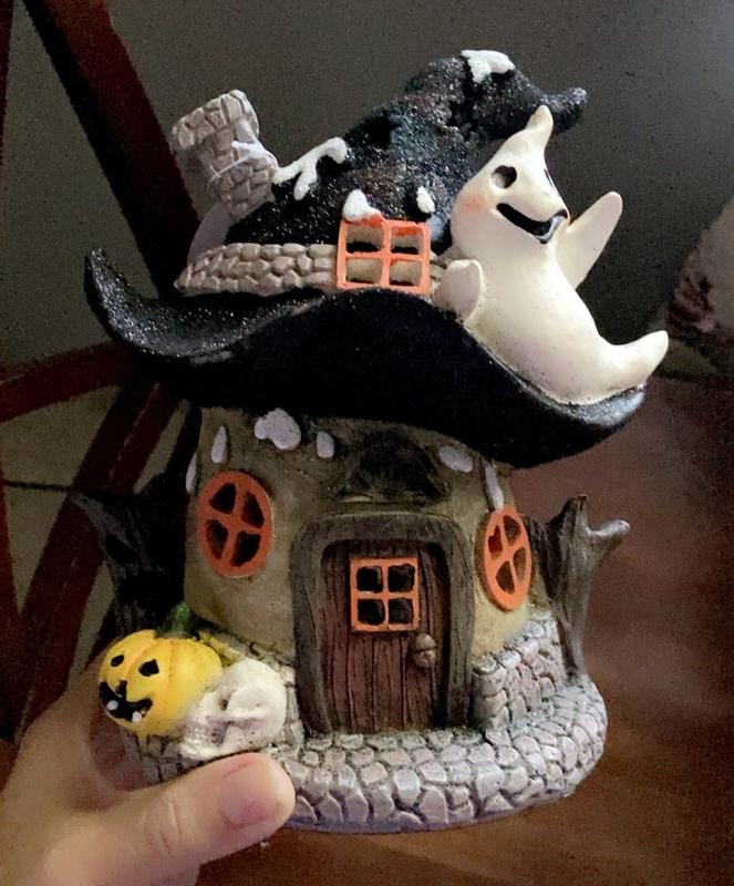Love this figurine for Halloween, it is a perfect size and the light is definitely a plus. Can’t wait to put it out this Halloween! My kids love it!
