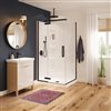 Hana doors are designed with clean, modern lines and have high-end hardware. They feature 8 mm tempered glass with the Lotus easy clean glass protection. The Lotus Glass Protection repels soap and water stains, making it easier to clean and protect the door from wear and tear – for long lasting shower. This reversible model allows for a left or right-hand door opening and the flush mount hinges on the inside glass panel, allow for easy squeegee cleaning. The Hana shower line, offers matching square drain base and acrylic walls for a complete shower solution.
