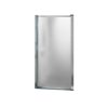 One panel pivot shower door with privacy glass and frame in chrome. Ideal for small bathrooms and DIY renovations. It features multiple water management features designed to keep the water in the shower and prevent leaks.