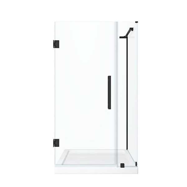 - Kit Includes: Aqua Fold Shower Door and Shower Base; Kit Size: 36-in D x 36-in W x 74 3/4-in H; Walk-in Opening: 33-in
