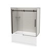 - This kit includes one 60-inch back wall, two 32-inch side walls, one glass corner shelf, the New Town 60-inch by 32-inch bathtub with a left hand drain and the Halo shower door in Dark Bronze