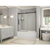 - The Halo sliding tub door brings a modern look. It features a ball bearing roller technology for a smooth and quiet opening, along with stunning frameless 5/16-inch clear tempered glass panels