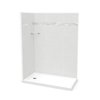 - This kit includes one 60-inch back wall panel, one 32-inch side wall panel, one glass corner shelf and the Olympia 60-inch by 32-inch shower base with a left hand drain