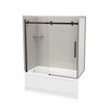 - The Halo sliding tub door brings a modern look. It features a ball bearing roller technology for a smooth and quiet opening, along with stunning frameless 5/16-inch clear tempered glass panels