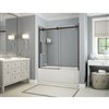 Create a sophisticated bathroom space with unparalleled ease and speed. Utile by MAAX is an innovative shower wall solution, available in a range of rich colours, deep textures and stylish patterns that look and feel like tiles. Why is Utile superior to tile? Starting with purchase and installation: with tiles, several other materials are required and a professional must complete the 3 day installation. Alternatively, Utile walls don’t require the purchase of other materials except silicone, and a few tools if not already in hand. They are fixed directly on the studs, in 1 day and do not require hiring an expert!Utile walls, on the other hand, have realistic and carefree faux grout lines that will not crack! This kit includes the Utile tub wall set in exclusive Ash Grey colour, New Town bath, Halo door with dark bronze hardware and left drain: for a hassle-free shower solution.
