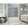 Create a sophisticated bathroom space with unparalleled ease and speed. Utile by MAAX is an innovative shower wall solution, available in a range of rich colours, deep textures and stylish patterns that look and feel like tiles. Why is Utile superior to tile? Starting with purchase and installation: with tiles, several other materials are required and a professional must complete the 3 day installation. Alternatively, Utile walls don’t require the purchase of other materials except silicone, and a few tools if not already in hand. They are fixed directly on the studs, in 1 day and do not require hiring an expert!Utile walls, on the other hand, have realistic and carefree faux grout lines that will not crack! This kit includes the Utile tub wall set in exclusive Ash Grey colour, New Town bath, Halo door with chrome hardware and right drain: for a hassle-free shower solution.