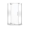 - Frameless neo-angle shower door 38 in x 38 in with reversible right or left door opening installation