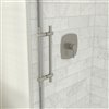 The Odyssey shower door gives a modern and refined look to any bathroom with its fluid movement and elegant brushed nickel finish. Designed around a desire to increase your comfort and safety, this reversible shower door is equipped with a double-sided handle and innovative double Soft Close technology. This new shower door, which can be installed in record time, requires no cutting and allows for quick adjustment, will bring you an extraordinary peace of mind. This robust and easy to install door is the perfect choice for your dream bathroom renovation project. The Zone Square shower base is comfortable, sturdy and designed to be easy to clean. This base has a smooth bottom with right drain installation, which guarantee a comfortable experience for your feet. Convenient corner or alcove installation ideal for any renovation project.