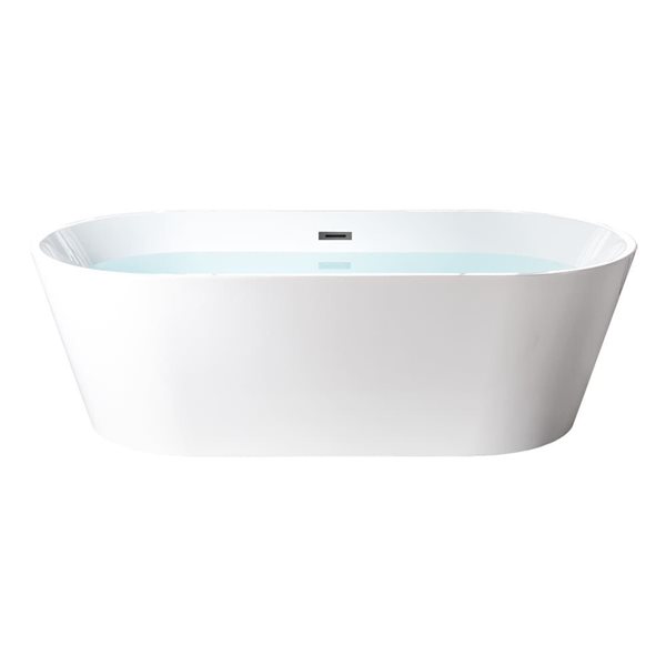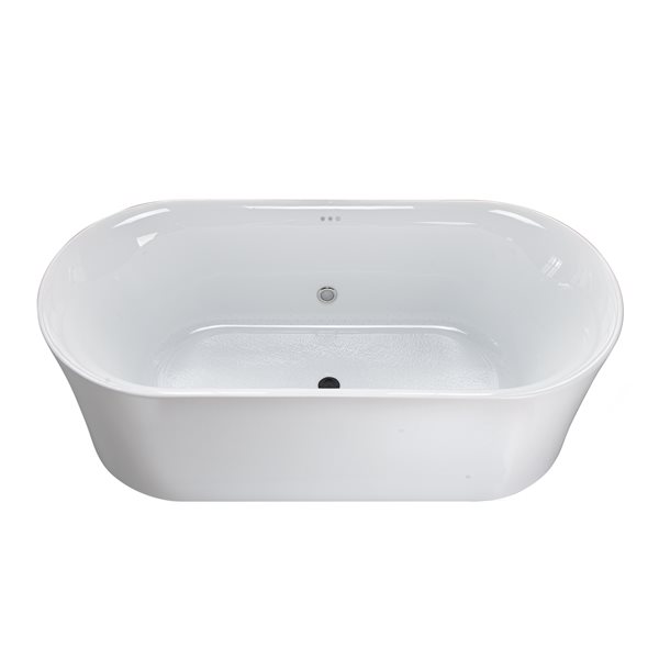 With a sleek design, the Emica freestanding bathtub by MAAX is easy to install. Practical and luxurious, this minimalist and symmetrical bathtub is designed for optimal comfort. Its spacious bathing well allows for a deep and relaxing bathing experience. It comes with convenient plumbing features such as adjustable feet and above the floor rough raised floor. This is a 2-piece construction, making installation quick and easy.
