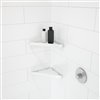 - MAAX corner triangular tempered glass and metal shelf measuring 9.6-in in length by 9.6-in in width in a classic glossy white black finish