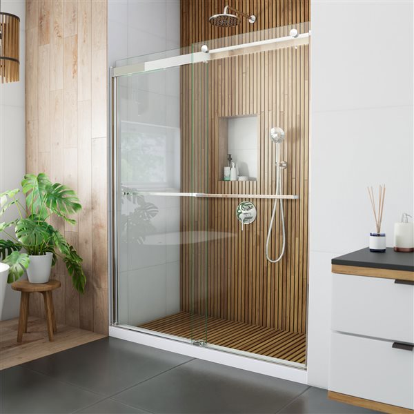 The DreamLine Duet Plus sliding bypass shower door has a sleek, elegant design that will complement both classic and modern bathroom decors. The Duet Plus features semi-frameless glass and smooth gliding rollers for a touch of traditional style, and offers a clean, streamlined appearance. DreamLine has the ultimate solution for your shower project. IMPORTANT! All measurements should be taken only AFTER walls are finished (tiles, back walls, etc.).