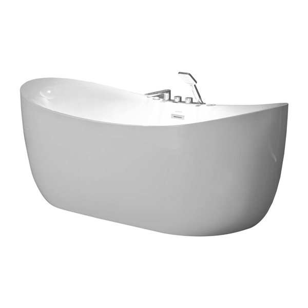 - 1-piece seamless acrylic oval bathtub with a non-porous, stain-resistant high-gloss finish