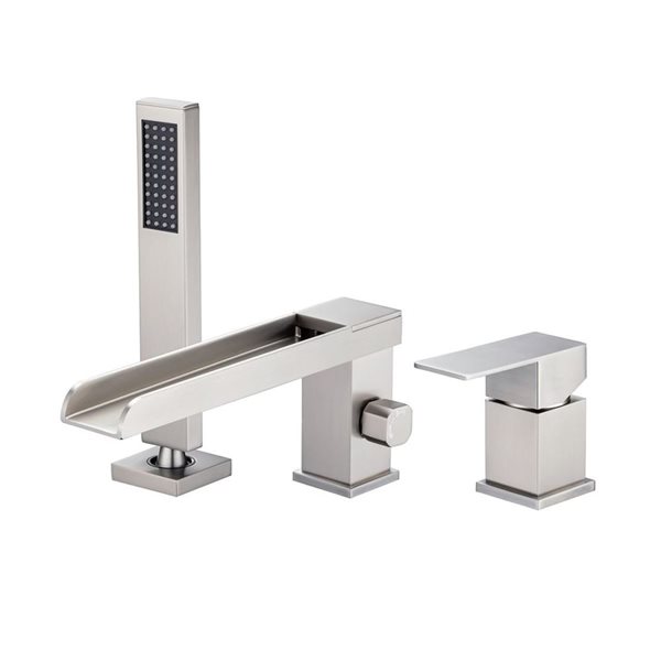 Simple and sophisticated, the Keros deck-mount waterfall tub faucet with hand shower comes in a range of premium finishes designed to fit any décor. Crafted from sturdy, solid brass, this faucet is designed for everyday use and will resist harm like tarnish and corrosion. Add a touch of modern style to your bathtub with the simple elegance of this contemporary deck-mounted bathtub faucet. Equipped with a curved gooseneck, it offers convenient single-lever water and temperature control for an optimal bathing experience. The modern-style hand shower is as convenient as it is beautiful and is sure to add to the premium features of this bathtub faucet. Elevate the appearance of your bath space with the Keros deck-mount faucet by MAAX and enjoy the experience!