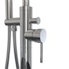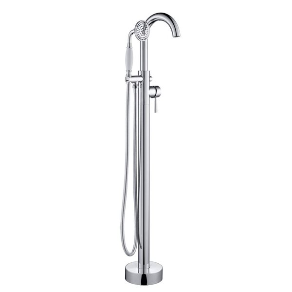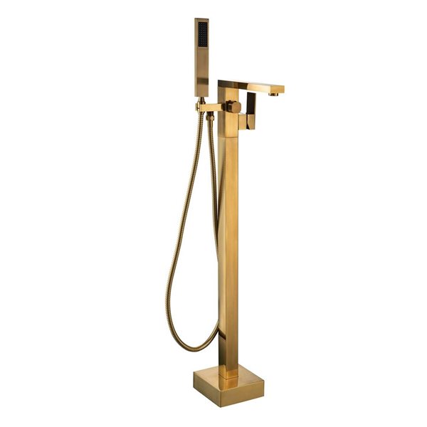 The Linosa freestanding contemporary bathtub faucet by MAAX will give you the sophisticated look your bathroom deserves. Its modern design, combined with its durable engineering, offers a long-lasting hassle-free solution for countless years to come. Crafted from sturdy, solid brass, this faucet comes in an array of beautiful corrosion-resistant finishes to pair with other elements of your project. The minimalist hand shower allows for easy use and swift clean up after washing. Equipped with a curved gooseneck spout, this faucet will handle everyday use while still looking and feeling brand new. Elevate the appearance of your bath space with the Linosa freestanding bathtub faucet by MAAX and enjoy the experience!