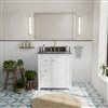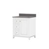 Elevate your bathroom with the Vanuria bathroom vanity, a refined blend of classic elegance and modern sophistication. Made from solid oak for long-lasting durability, this freestanding vanity is sealed with a protective lacquer that resists moisture and preserves its flawless finish. Designed for both style and function, it offers a spacious layout with one cabinet door and three soft-close drawers for smooth, quiet access. The rectangular undermount ceramic sink includes a built-in overflow to help prevent spills, while the predrilled countertop allows for quick installation of an 8-in widespread faucet (not included). A matching 4-in backsplash adds a polished finish. Available in multiple sizes, finishes, countertop materials, and hardware colours, the Vanuria adapts to any space. With a cUPCus-certified sink and a 5-year limited warranty, this vanity delivers dependable quality and versatile design.