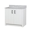 The Urba bathroom vanity brings modern elegance with its vertical slatted design, effortlessly complementing any bathroom decor. Built with a solid oak frame, it delivers both durability and timeless appeal. The included 4-in matching backsplash (not preinstalled) offers flexible customization, while the predrilled countertop accommodates an 8-in widespread faucet for easy installation. Designed for everyday convenience, the rectangular sink features a built-in overflow to help manage water levels and prevent spills. Soft-close doors and drawers ensure smooth, quiet operation, and the wood is sealed with a protective lacquer to resist moisture and preserve the finish. Available in multiple sizes and finishes, the Urba vanity adapts to your space and comes backed by a 5-year limited warranty for added peace of mind.
