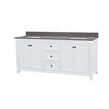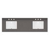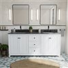 Elevate your bathroom with the Vanuria bathroom vanity, a refined blend of classic elegance and modern sophistication. Made from solid oak for long-lasting durability, this freestanding vanity is sealed with a protective lacquer that resists moisture and preserves its flawless finish. Designed for both style and function, it offers a spacious layout with four cabinet door and three soft-close drawers for smooth, quiet access. The rectangular undermount ceramic sinks include a built-in overflow to help prevent spills, while the predrilled countertop allows for quick installation of 8-in widespread faucets (not included). A matching 4-in backsplash adds a polished finish. Available in multiple sizes, finishes, countertop materials, and hardware colours, the Vanuria adapts to any space. With two cUPCus-certified sinks and a 5-year limited warranty, this vanity delivers dependable quality and versatile design.