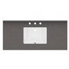 - Features a single rectangular undermount ceramic sink