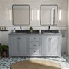 Elevate your bathroom with the Vanuria bathroom vanity, a refined blend of classic elegance and modern sophistication. Made from solid oak for long-lasting durability, this freestanding vanity is sealed with a protective lacquer that resists moisture and preserves its flawless finish. Designed for both style and function, it offers a spacious layout with four cabinet doors and three soft-close drawers for smooth, quiet access. The rectangular undermount ceramic sinks include a built-in overflow to help prevent spills, while the predrilled countertop allows for quick installation of 8-in widespread faucets (not included). A matching 4-in backsplash adds a polished finish. Available in multiple sizes, finishes, countertop materials, and hardware colours, the Vanuria adapts to any space. With two cUPCus-certified sinks and a 5-year limited warranty, this vanity delivers dependable quality and versatile design.