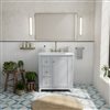 Elevate your bathroom with the Vanuria bathroom vanity, a refined blend of classic elegance and modern sophistication. Made from solid oak for long-lasting durability, this freestanding vanity is sealed with a protective lacquer that resists moisture and preserves its flawless finish. Designed for both style and function, it offers a spacious layout with one cabinet door and three soft-close drawers for smooth, quiet access. The rectangular undermount ceramic sink includes a built-in overflow to help prevent spills, while the predrilled countertop allows for quick installation of an 8-in widespread faucet (not included). A matching 4-in backsplash adds a polished finish. Available in multiple sizes, finishes, countertop materials, and hardware colours, the Vanuria adapts to any space. With a cUPCus-certified sink and a 5-year limited warranty, this vanity delivers dependable quality and versatile design.