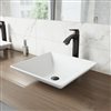 Angular and artistic, the VIGO Hibiscus Matte Stone™ Vessel Bathroom Sink Set with the Linus Vessel Faucet is in a league of its own. The Hibiscus sink's Matte Stone™ composite construction resists scratches, stains, and impact. Its non-porous material ensures the sink remains sanitary and bacteria-free. When paired with the ultra-modern, 7-layer coated finish VIGO Linus Vessel Faucet, the Hibiscus' sleek design is even more attractive. A complimentary matching pop-up drain completes this unique bathroom sink set.