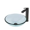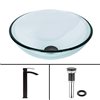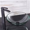 Perfect textures provide an elegant bath design for The Crystalline Glass Vessel Bathroom Sink Set with Duris Vessel Faucet by VIGO. Matte black finished hardware adds an illuminating contrast for clear glass. Curved lines create a seamless silhouette for this bathroom set. Polished finishes make hardware and sink easy to clean. The single handle faucet provides smooth operation and water control. The included matching pop-up drain and mounting ring completes the set and supports its effortless installation.