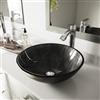 VIGO Glass 17-in dia. Onyx Round Vessel Bathroom Sink with Linus Faucet/Drain - Chrome