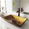 Solid, kiln-fired tempered glass makes the handcrafted VIGO Rectangular Gold Glass Vessel Bathroom Sink ideal for everyday use. The polished interior and textured exterior are stain-resistant and easy to clean. The sink's rectangular shape, paired with a blended gold hue adds a rich glow to any decor to result in a fashion-forward bathroom.
