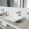 VIGO Hibiscus 16-in Matte White Stone Square Vessel Bathroom Sink with Niko Faucet/Drain - Brushed Nickel