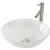 VIGO Glass 17-in dia. White Round Vessel Bathroom Sink with Dior Faucet/Drain - Brushed Nickel