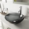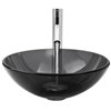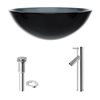 The VIGO Sheer Black round glass vessel bathroom sink with Dior faucet brings two uniquely designed products together in one impeccable combination. The hand-painted vessel sink is made from solid tempered glass, keeping it safe and resilient to dangerous shards and breakage. The sink has a smooth, polished interior and a textured exterior, which helps it withstand scratches and makes it easy to clean. The sink pairs perfectly with the VIGO Dior vessel faucet, a single-handle model with a premium hardware coating that gracefully resists wear and tear. This set will impress you with its premium hardware and a complementary, matching pop-up drain.