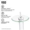 The unique, cascading feature of this Vigo® bathroom faucet instantly creates a spa-like atmosphere in your bathroom. The clear, tempered glass disk creates a waterfall effect on the single lever faucet, while the base is constructed from durable, solid brass and finished in a sleek chrome. Limited lifetime warranty.