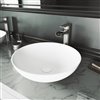 VIGO Lotus 16-in dia. White Matte Stone Round Vessel Bathroom Sink with Amada Faucet/Drain - Brushed Nickel