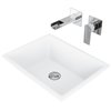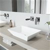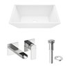 - All-in-one kit includes: 1 rectangular Matte Stone™ vessel bowl sink, 1 two-hole 1-handle wall-mount faucet, 1 pop-up drain without overflow