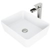 Make space for shapes with the VIGO Marigold Matte StoneTM Vessel Bathroom Sink Set with the Amada Vessel Bathroom Faucet. This geometrically-inclined duo perfectly pair a streamlined, rectangular Matte StoneTM sink with a sleek, trough-style faucet for effortless elegance. The sink's rounded edges and the faucet's mineral-resistant nozzle make the entire set easy to clean. A matching finish pop-up drain, inserted directly into the sink, completes this bathroom sink set.