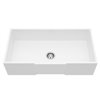 The 36-in VIGO square front Matte Stone™ farmhouse kitchen sink exudes the timeless charm of the farmhouse aesthetic, while upholding the efficiency of contemporary design. This innovative sink is constructed of a durable Matte Stone™ composite, designed to look and feel like seamlessly crafted polished stone. A complimentary stainless steel strainer and VIGO cutting board are included.