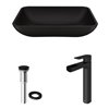 Smooth textures and bold hardware intelligently magnify The Sottile MatteShell™ Bathroom Vessel Sink with The Amada Faucet by VIGO. With VIGO’s proprietary MatteShell™ material, the sink is made from a solid tempered glass that ensures long-lasting durability. Its matte black composite is illuminated by premium finished hardware. VIGO’s 7-layer plated hardware promises a luminous finish for solid brass constructed hardware. Ergonomic design features are reflected through the superior engineering of the faucet. The set is complete with a matching pop-up drain to ensure a relaxing bathroom experience.