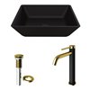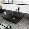 Revolutionary design details reimagine your bathroom experience with The Black Roma MatteShell Vessel Bathroom Sink Set with Lexington cFiber Faucet by VIGO. Contrasting textures add attractive design elements to the space. The innovative Lexington faucet is engineered with cFiber, a material that is lighter and stronger than typical metals. The texture is smooth to the touch with a texturized look. Constructed with VIGO’s proprietary material, the sink delivers non-porous and easy to clean surface. The contemporary design of this bathroom sink set can be attributed to elemental form. This bathroom sink set is complete with a matching pop-up drain.