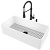 VIGO Matte Stone 36-in W x 18-in D Matte White Single Farmhouse Apron-Front Kitchen Sink Workstation w/Faucet