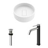 VIGO Bryant 15-in dia. White Matte Stone Round Vessel Bathroom Sink with Lexington Faucet/Drain - Brushed Nickel
