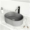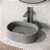 The VIGO Giralda Gothic vessel sink brings modern elegance to your bathroom. This stylish sink measures 16-in. L x 11-in. W x 5-in. H, offering a spacious basin with smooth, rounded edges. The gray finish creates a contemporary look that complements various décor styles. Crafted from durable ConcretoTM material, this sink resists scratches and stains, making it easy to maintain. Its seamless design prevents bacteria buildup, promoting better hygiene. The sink's oval shape and sleek profile add a touch of sophistication to any countertop. It's versatile enough to suit both modern and traditional bathrooms, adapting effortlessly to different design schemes. This vessel sink combines practicality with aesthetics, offering a luxurious look without compromising on functionality. Its above-counter installation creates a striking focal point, elevating your bathroom's overall appearance.