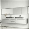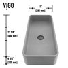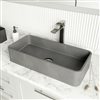 The VIGO Palazzo Gothic vessel sink showcases a modern, minimalist design that effortlessly enhances any bathroom. This rectangular sink, measuring 24-in. L x 11-in. W x 4-in. H, features a sleek gray finish that complements a wide range of decor styles. The smooth, matte surface of the sink creates a sophisticated look while offering practical benefits. Crafted from durable ConcretoTM material, this vessel sink resists scratches and stains, making it ideal for daily use. Its hygienic properties ensure easy cleaning and maintenance. The sink's simple yet elegant form allows it to adapt seamlessly to various bathroom designs, from contemporary to transitional. This vessel sink is designed to sit atop a countertop, creating a striking focal point in your bathroom. Its versatile style works well with different faucet types and vanity designs, allowing for customization to suit your preferences.