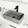 The VIGO Cordoba Gothic vessel sink showcases a modern, minimalist design that enhances any bathroom. This rectangular sink, measuring 20-in. L x 13-in. W x 5-in. H, features a sleek gray finish that adds sophistication to your space. The sink's clean lines and simple shape make it versatile enough to complement various bathroom styles, from contemporary to transitional. Made from durable ConcretoTM, this sink offers excellent scratch and stain resistance, ensuring it maintains its elegant appearance over time. The non-porous surface is easy to clean and naturally inhibits the growth of bacteria, promoting better hygiene. The sink's smooth, ash gray texture provides a high-end look that elevates your bathroom's overall aesthetic. Its above-counter design creates a striking visual focal point and works well with a wide range of countertop materials. The VIGO vessel sink effortlessly combines form and function, offering a spacious basin for everyday use while making a stylish statement.
