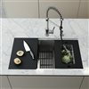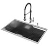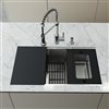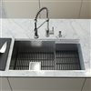 Taking kitchen design to unexpected levels, VIGO reinvents the stainless steel kitchen sink with The Hampton exclusive kitchen sink set. Influenced by some of the most professional kitchens, The Hampton is a chef-inspired workstation that integrates a multifunctional tier into its design. It's the perfect kitchen workstation for meal prep, cooking, and cleaning. This all-in-one kitchen sink set includes the best-selling Edison pull-down kitchen faucet in matte black, a coordinating soap dispenser, colander, cutting board, silicone bottom grids, and a strainer. Constructed with stainless steel, the drop-in kitchen sink provides lasting durability and performance. Elevate the functionality and convenience of your kitchen with a multifunctional kitchen workstation that gives you the tools to do more.